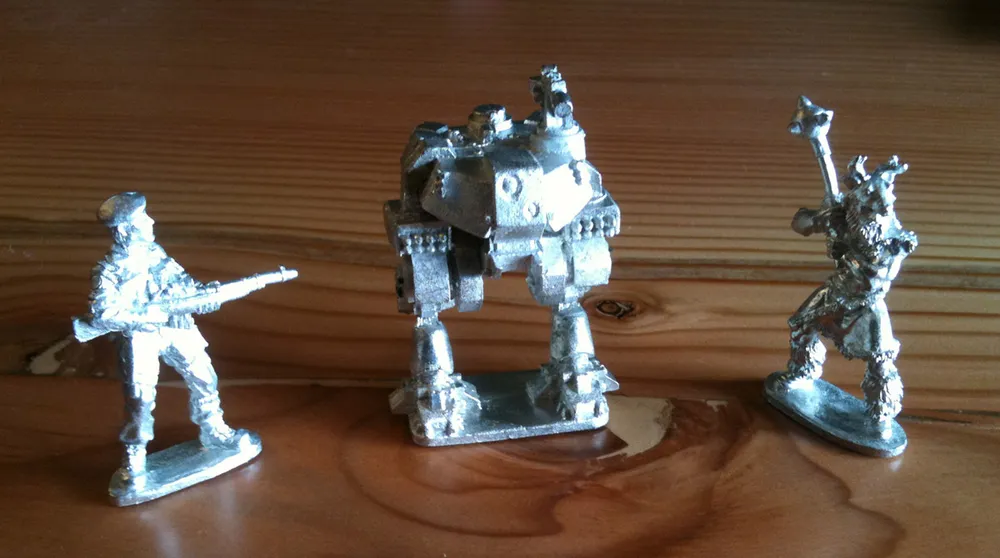 Несколько металлических фигурок и сам бокс с игрой.