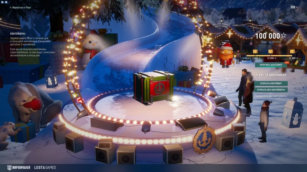В честь празднования Нового года «Мир кораблей» порадует игроков многочисленными подарками. В Адмиралтействе можно забрать бесплатный контейнер «Новогодний подарок», еще один лежит во внутриигровом Премиум-магазине, а третий бесплатный контейнер можно найти на официальном портале в статье, посвященной празднованию Нового года по ссылке. Кроме того, в Адмиралтействе и Премиум-магазине представлены наборы с контейнерами трех размеров: «Новогодний подарок», «Большой новогодний подарок» и «Гигантский новогодний подарок». В них можно найти дублоны, уголь, дни премиум-аккаунта, элитный опыт, слоты в порту, расходуемые экономические бонусы и камуфляжи, сигналы или один из ста семидесяти четырех кораблей, включая редкие и корабли десятого уровня.