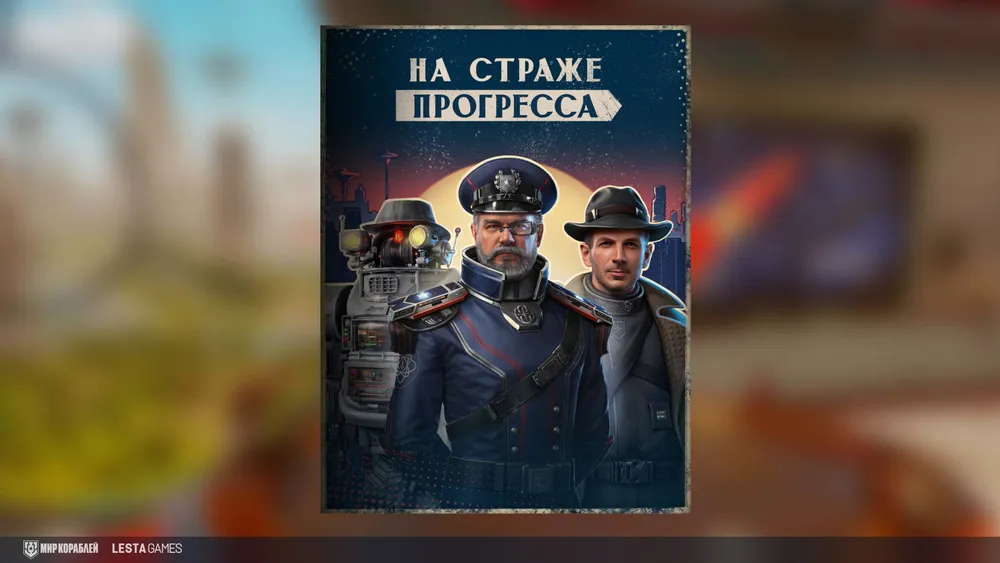 Событие «Во имя прогресса» включает в себя приключение «На страже прогресса», праздничную коллекцию «Во имя прогресса», бонусы за боевые результаты и разнообразные награды за них, а также новый линкор «Алый гром» в случайных наборах. Также в честь события в игру добавлены флаг и символ «Во имя прогресса». А обновленный порт «Стол конструктора» будет называться «Наукоград» на протяжении всего Обновления 12.8.