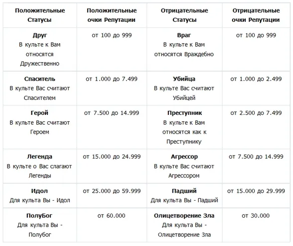Владыка Дара смотрит на все происходящее с неодобрением. Призывает Воплощенных к мировому порядку. А что-бы как-то осадить пыл и страсть своих детищ, кабы не истребили они сами себя, введена была его властной рукой репутация в мире Дара. Каждый, кто свято чтит законы братства, может прослыть среди соратников Героем, Легендой, Идолом, а то и ПолуБогом. И вместе с этим враги с дрожью в голосе будут называть вас Убийцей, Агрессором, а то и Олицетворением Зла.
