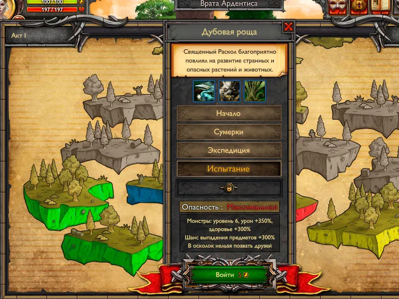 Следующий тип сложности называется “испытание”, в нем, в отличие от тех же сумерек нельзя позвать друзей, то есть придется гарантированно проходить в одиночку, мобы намного сильнее, но и шанс дропа предметов указан +200%. В один момент тестирования были еще PvP осколки, в которых надо было не только убить босса, но и уничтожить всех членов вражеской фракции, чтобы унести добычу, само собой, дроп там был ого-го, но потом их выключили - видно на доработку.