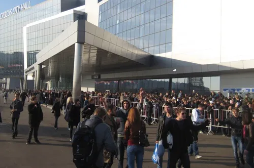Где-то через неделю после нашего визита в Южную Африку (где большая часть времени ушла на судорожное заполнение заявок на визу – похоже, здесь так принято) мы продолжили наше путешествие и вскоре добрались до Москвы на самолете, поезде и метро. Впрочем, у нас не было времени осматривать местные достопримечательности, потому что на следующий день нам предстояло показывать Absolution на гигантской игровой выставке. Первый день был для VIP, то есть для прессы и журналистов, а также для тех, кто оказался готов выложить за билет чуть больше для того, чтобы посмотреть на игры чуть раньше и, что куда важнее, в более спокойной обстановке. Игромир явно оказался самым крупным событием в нашем турне – по нашим оценкам, за четыре дня здесь побывало порядка 90 000 человек.