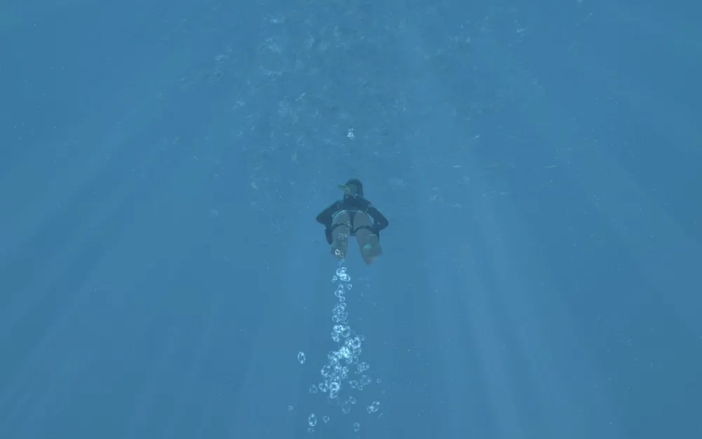 После погружения под воду на глубину, от которой Жак-Ив Кусто просто должен был бы сплющиться и погибнуть вместе с батискафом мы встречаемся с некоторым и странными вещами: там плавают медузы, акулы и очень светло и весело. Ларе особенно, грустно только акулам, которые пытаются нарваться на пушку главгероини, откушав которой уплывают восвояси.