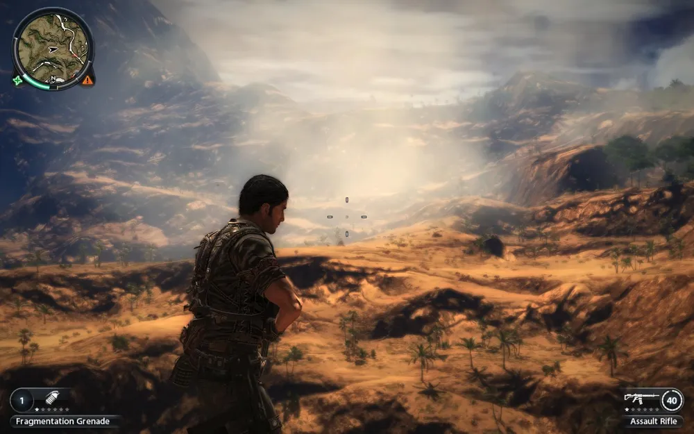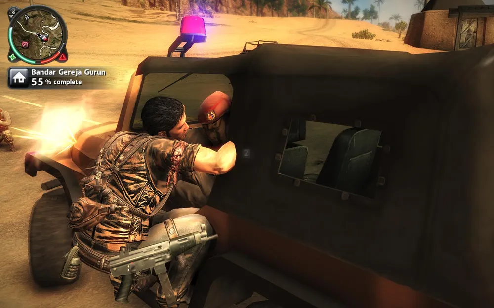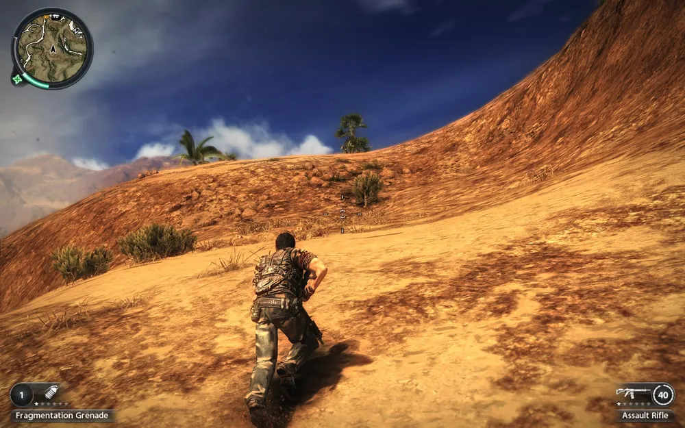 Во-вторых, корявая графика и физика. Человечки, бегающие по отвесным скалам; мотоциклисты, не слетающие с мотоциклов после прямого тарана армейским джипом; окружение, состоящее из 4 полигонов; море БЛЮРА, который не помогает спрятать огрехи; и общая невыразительность картинки (ИМХО). Все это не очень круто смотрится. Плюс самые голимые эффекты взрыва гранат, честно. Выглядит, как китайская петарда за 3 рубля.
