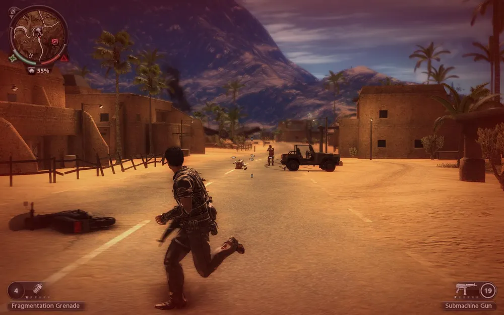 Затариваемся оружием, сигаем с парашютом сниз, и идем выносить здания опозиции. Начинается помесь Red Faction Guerrilla, и GTA. За разрушения структур противника начисляются очки. Как только мы начинаем этим заниматься, прибывают войска противника, и начинается сущий ГТА) Только теперь можно картинно запрыгивать на машину (кто управляет тачкой - неизвестно. ГГ так крут, что умудряется управлять машиной, стоя на капоте), прыгать с одного джипа, на другой (или на мопед, как вариант), выпрыгивать из машины с раскрытым парашютом (!!!) итд, итп. Иногда даже занятно, чесслово)) Может, если игру оптимизируют, вполне можно будет получить свою долю фана.