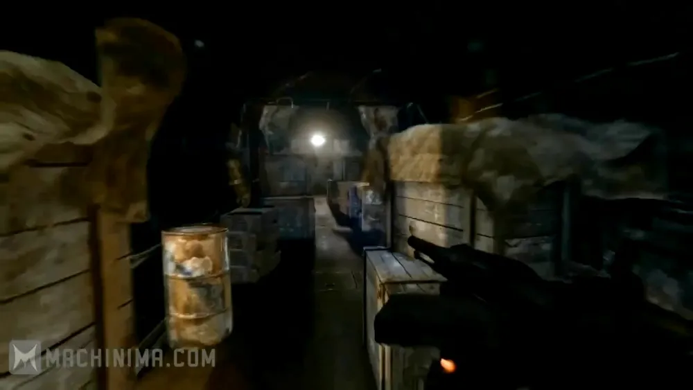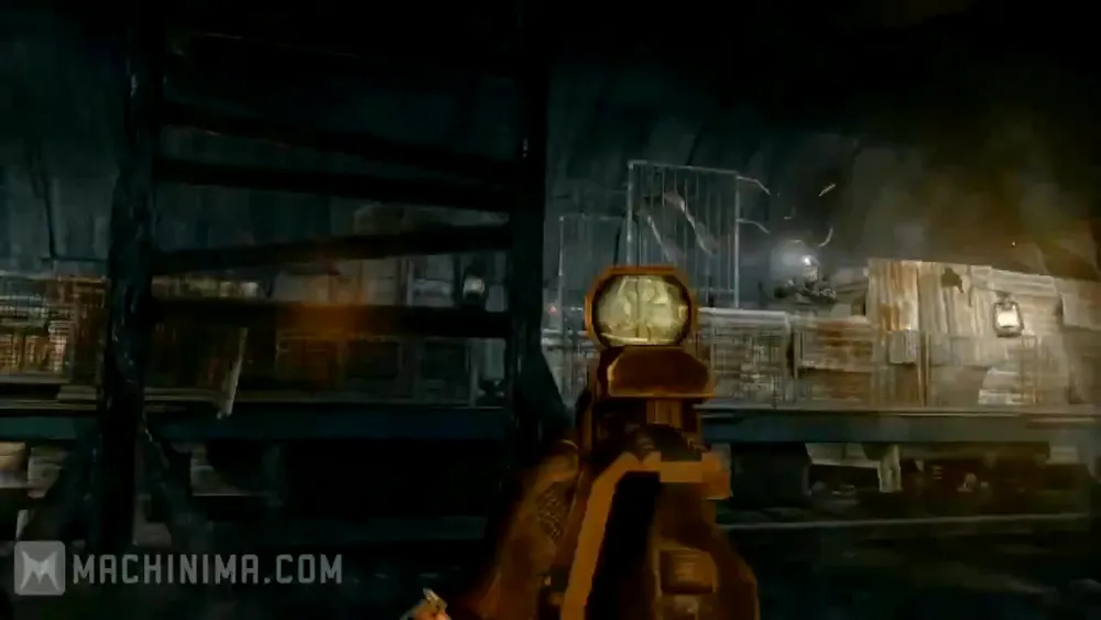 Ну почему из этой ситуации нельзя выжить максимум, почему все надо скатывать в обычную "пиф-паф"? В игре есть динамическое освещение, ну так используйте его! Периодическое включение-выключение источников света очень хорошо влияет на напряжение. Тусклая подсветка противников делает процесс прицеливания более интересным. В конце концов, можно сделать так, чтобы на вагонетке с Артемом был прожектор, который можно направлять и выключать (для регенерации здоровья, мол, тебя не видно). Помимо освещения, нужно заставить игрока попотеть в расстреле вражеского состава. Заставить их не только стрелять, но и кидать гранаты. Не успеешь подстрелить замахнувшегося, конец игры.
