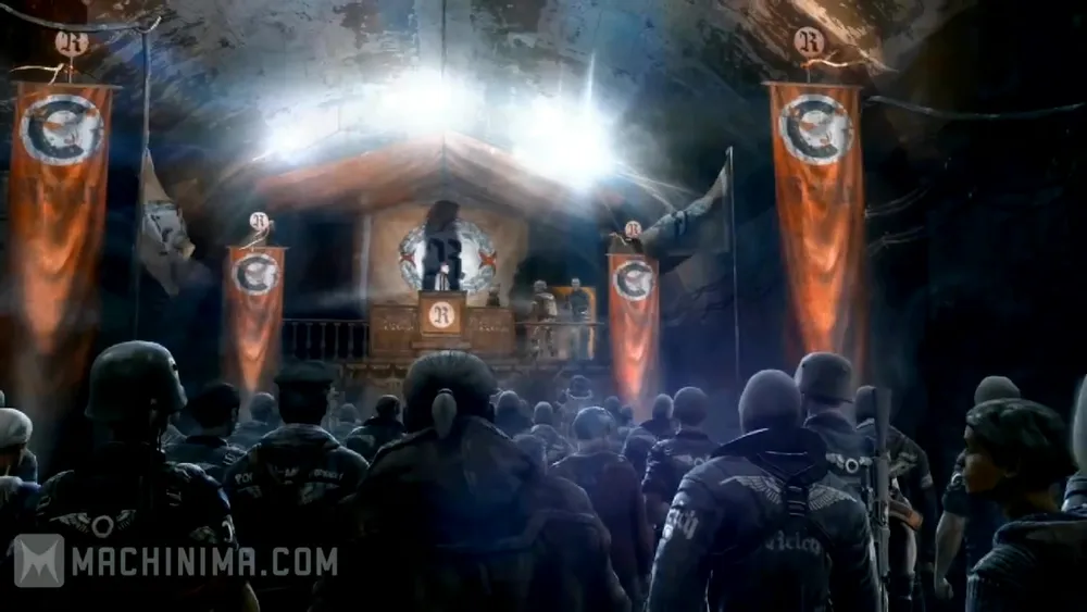 Опять бред дизайнера. Во-первых, обычно сообщения о дезертирах говорят шепотом и на ухо, а не на весь зал. Неужели игрок сам не додумается, что речь пойдет о нем? Во-вторых, само помещение. Видимо в метро дела идут очень хорошо, аккуратная форма на стольких солдатах, симметричное и чистенькое оформление помещения. Не лучше было бы сделать вид из разряда "сделано любителями" говоря о внешнем виде нацистов. Где фантазия, епта?