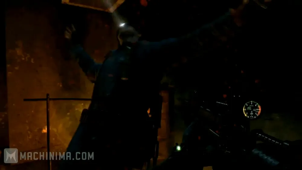 А вот и первые нотки КоД'а. Измененный POV, смещение огнестрела и т. п. Я могу очень долго философствовать на тему расположения оружия в руках игрока, но не буду (чем ближе оно к правому краю, тем лучше "чувствуется" мышкой, т. е. как будто продолжение руки, в свою очередь, оружие по центру, это: а) Меньшее время переключения на приклад; б) Гейпад в середине, телевизор далеко, создается чувство симметричности). Скажу лишь, что в первой части оружие меня полностью устраивало. Но все жаловались на стрельбу пушек, и здесь мы видим измененное его расположение. Улавливаем связь?