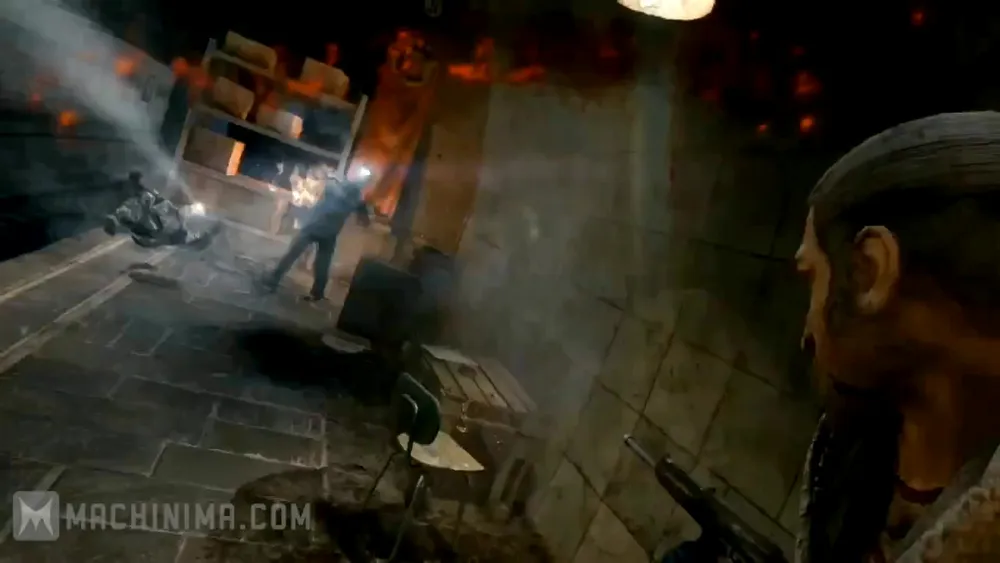 Как, например, здесь. Опять скриптовой ролик. Но вот что мешает сделать так, чтобы Артема ударили пораньше, и, пока Кан его тащит до тележки, Артем отстреливался бы от преследователей. Но не просто отстреливался, мы же помним, что его тащат, а сам он не в состоянии ходить, что влияет на поведение прицеливания. Например, целится можно будет не только мышью, но и клавишами движения для компенсации обездвиженности.