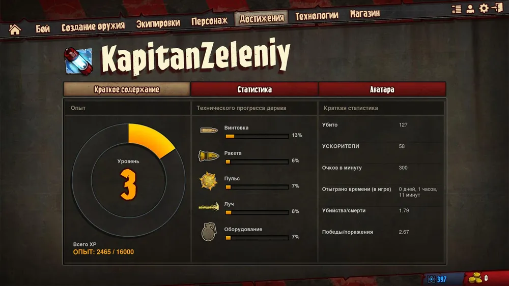 В игре есть система уровней и достижений, с полной статистикой. За достижения я пока, что только аватары открыл, увы…Так же аватары можно и задонатить.