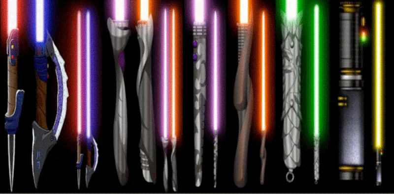 Оценить разнообразие дизайна и понять, какой еще рукояти не хватает в вашей коллекции, можно на этом рендере. Разнообразие в цветах и звуках достигается за счет использования различных цветовых кристаллов, матрицы излучателя, рукояти, кристаллов мощности и фокусирующей линзы.