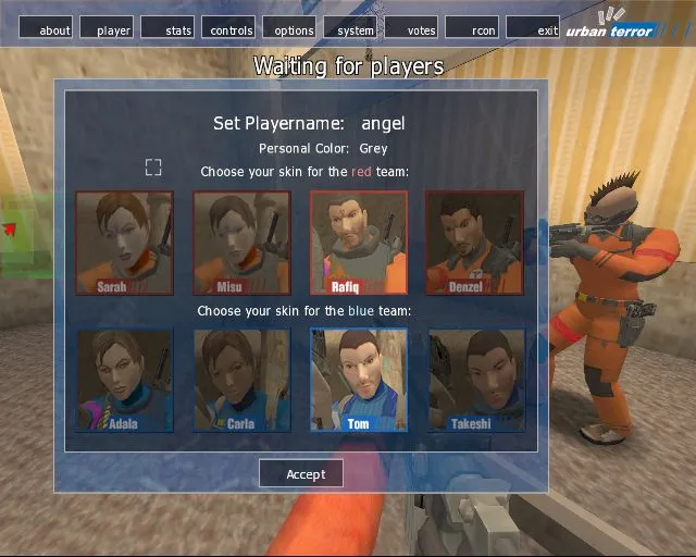 После чего вы попадёте в меню выбора модели игрока