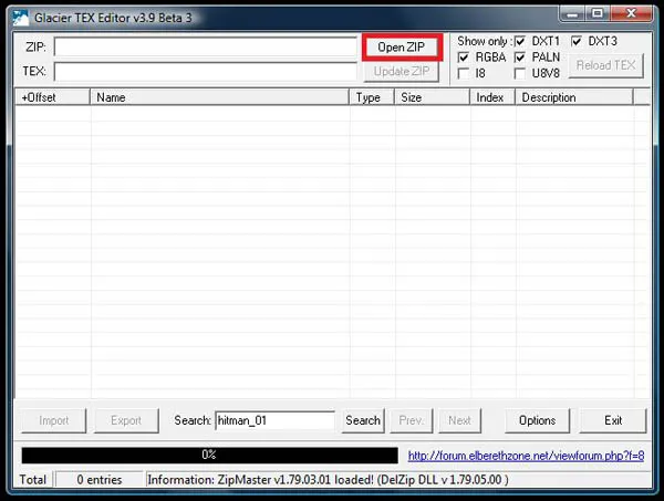 1. Для импорта/экспорта готовх скинов нам нужен Glacier TEX Editor v3.9 Beta 3 (качай тут)