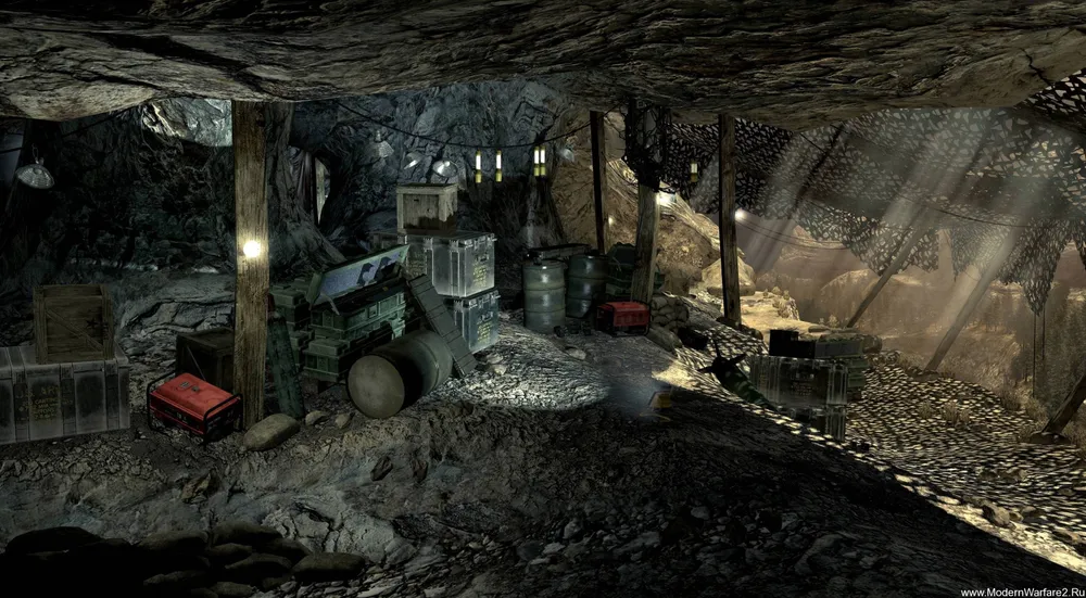 IW радушно признают, что пещерные лагеря в стиле Тора-Бора почерпнуты из фильма «Железный человек», как и легкий шум техники, спрятанной под землей.