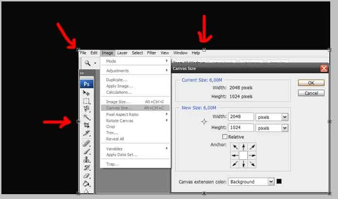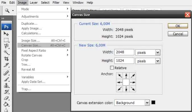 Image - canvas size – устанавливаем значения Width (ширина) и height (высота).