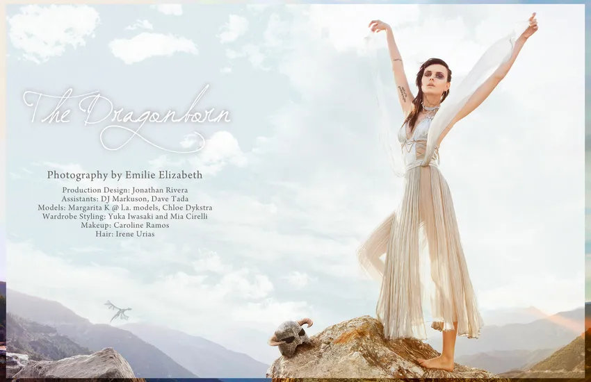 Эмили выпустила серию снимков под популярным игровым названием "Драконорожденный" (The Dragonborn). Эта сессия - немного необычный взгляд на Скайрим. Она объединяет узнаваемые особенности холодной провинции Тамриэля (от стрелы в колене до ведра на голове) с элементами высокой моды, включая моделей, одежду и макияж. Также эти фотографии можно посмотреть на сайте автора.