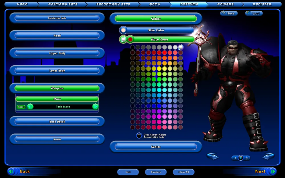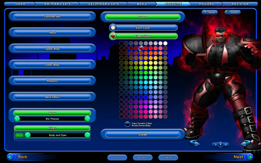 Далее выбрал цвета для своих умений. Надо признаться, что это очень классно выбирать под каждое умение свой уникальный цвет. Чувствуешь, что точно такого же героя нет ни у кого. Т.е. ты создаешь что то свое. Приятное чувство. Плюс ролеплейность не страдает. Т.е. если ты создал токсичного монстра, который использует лучи из глаз синего цвета, это не так эффектно, если бы лучи были ядовито-зеленого цвета. Короче моя истетическая натура просто пела в момент, когда я подбирал под каждое умение свой идеологически правильный цвет.