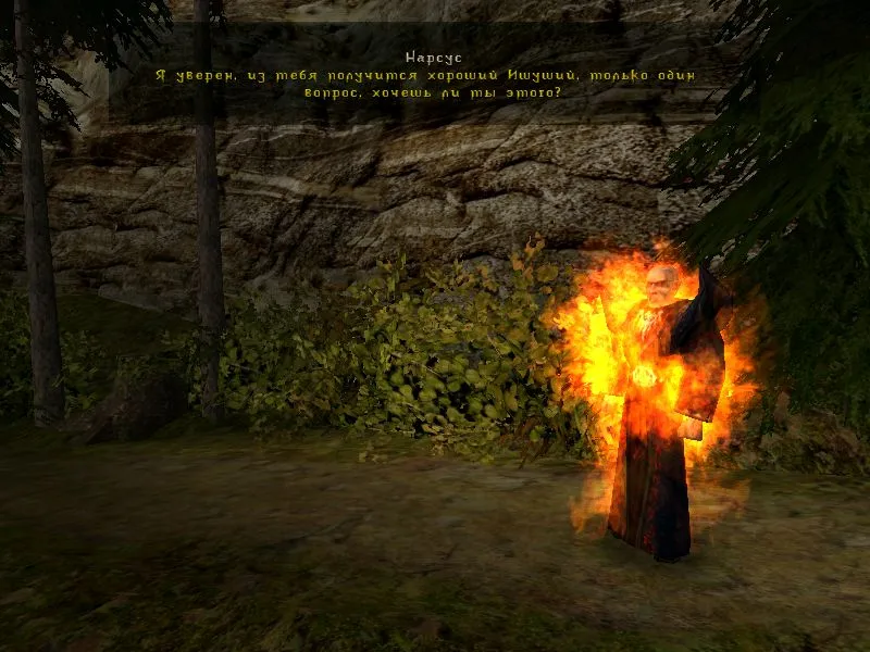 На выходе из башни стоит ещё одно "нововведение", некромант Нарсус. Он чувствует в поле Гг ауру могущественного архи-демона и предлагает стать ищущим. Я согласился. После этого он даёт задания(найти 2-ух его друзей и отправить к нему). От Дракаша пользы мало, наоборот - чтобы он подался к Нарсусу его надо проинформировать о портале Аданоса, который отрыли маги воды. С лордом Гельтхеном всё куда проще. С ним нужно лишь сходить в пещеру, где он сам, без вашего непосильного участия, истребит обитающего там демона. Обыщите пещеру! Там вы найдёте книгу, обучающую вас регенерации. Учтите, на это вы потратите очки обучения.