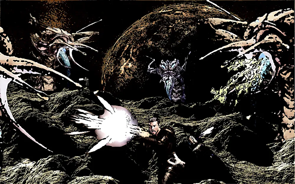 - Вы должны знать ваши шансы на выживание. Когда, вы не на транспортном средстве, плевок кислоты сразу убивает вас, даже если не попал непосредственно на вас. Высокий уровень регенерации у солдата, и / или Медицинский интерфейс, который обеспечивает сопротивление токсинам, могут смягчить урон, наносимый кислотой Молотильщика. Для того, чтобы выжить после прямого попадания плевка Молотильщика, надо иметь очень большое количество здоровья, так как он полностью игнорирует всю вашу защиту.