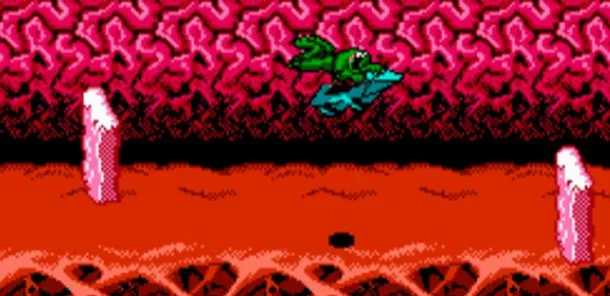 Любой список самых разочаровующих/сложных/бесящих игровых моментов должен содержать в себе этот уровень, и не просто так- он мать его почти невозможный. Многие геймеры помнят Battletoades , но эти воспоминания могут обрываться на этом уровне. Тут вопрос даже не в умении, а в запоминании местоположения всех барьеров , и почти садистского уровня терпения для этого безумия. Сделайте одну ошибку и вы будете размазаны по произвольно возникшей бетонной плите.