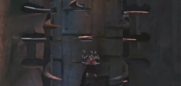 На первый взгляд эта колонна( две на самом деле) выглядит простой, пока у тебя есть достаточно терпения. Для некоторых это вполне возможно. Другие( это может быть и автор этого поста) могут ударяться головой об шипы и падать вниз сотни раз, что заканчивается обильным ливнем отборной брани. Это не является тяжелым испытанием, но каждый раз, когда эти шипи сбрасывают вас вниз, ваш персональный гневометр растет до полного покраснения вашего лица.