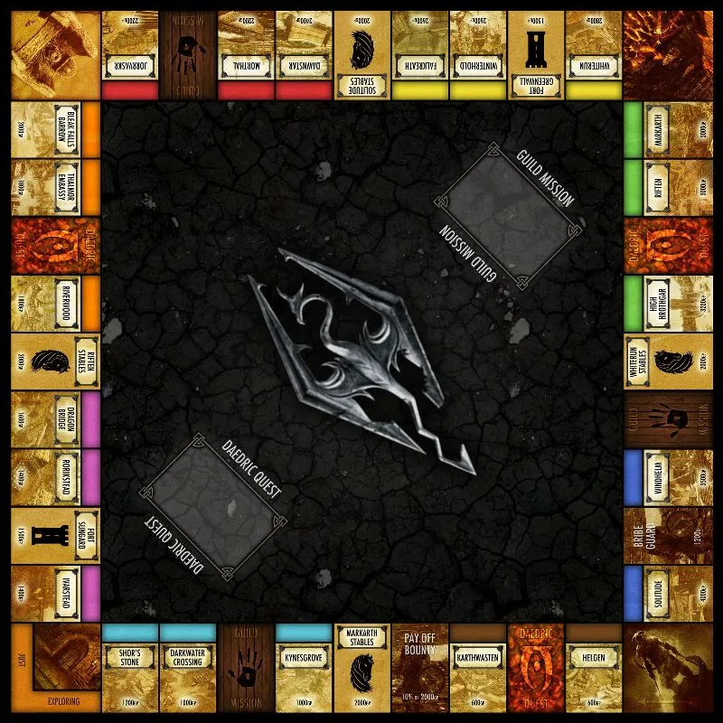 Участник сообщества художников DeviantART Алекс Беннет нарисовал игровое поле, карточки и монеты для этой настольной игры в стиле Skyrim.