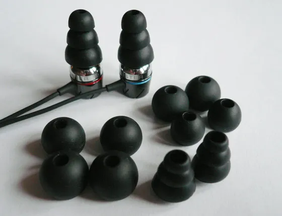 В комплекте идут 2 довольно миловидных чехольчика. В них удобно хранить наушники, чтобы не поцарапать их или ими другие предметы. Насадок положили целых 6 пар, из которых 4 выполнены в виде обычных куполов, а 2 пары — трехлепестковые. Наушники плотно сидят в ухе и звукоизоляция крайне неплохая. Пока лучше мне встречать не доводилось. Но вот уши немного устают. К выбору насадок стоит отнестись внимательно, иначе вы будете получать постоянный дискомфорт