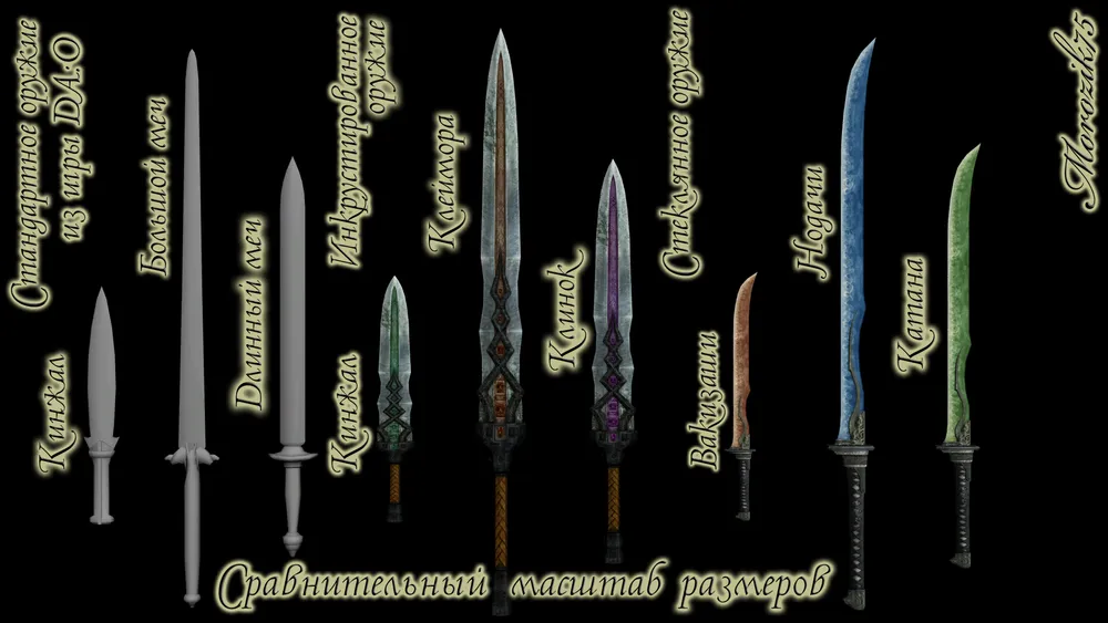 во-вторых, автор отошёл от канонов игры и размеры его клинков стали просто (на мой взгляд) несуразными, а именно: короткие длинные мечи, нереально короткий и «пузатый» большой меч;