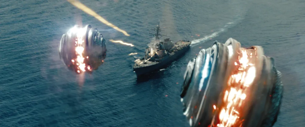 И теперь взглянем на внешность фильма, ведь это все же блокбастер, а он должен быть зрелищным и пафосным. И он такой и есть, не будем этого отрицать! Визуальный ряд не пытается быть реалистичным, но при этом ярок, и выполнен на очень высоком уровне. Особенно это касается главной темы фильма - кораблей и воды. Флот обеих воюющих сторон выполнен превосходно. А уж когда в дело ввязывается один старый ветеран, живущий на Гавайях, так и вовсе уровень Wow-эффекта зашкаливает! Я про корабль, если что. Кстати, чуть не забыл проспойлерить чуть ли не самый оригинальный момент фильма - игру в собственно Морской бой с пришельцами. Обыграно это просто превосходно, да так, что лучше один (или не один) раз увидеть. Ну и стоит отметить звук, точнее музыку. Заданный Железным Человеком тон на использование в военных блокбастерах веселого хард-рока вроде AC/DC или Оззи Осборна весьма удачно подхвачен многими фильмоделами, и Морской бой - не исключение и это просто шикарно!