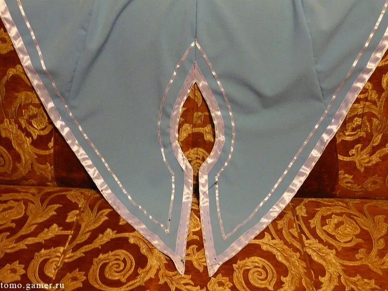 Приступаем к отделке плаща. Надо сделать белую окантовку по всему краю и узор на рукавах.