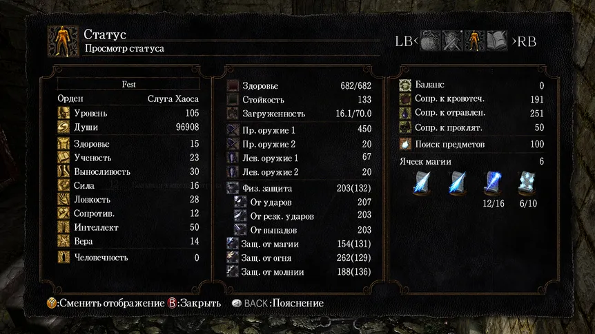 14. Далее качаем силу до 16 (под Клеймор), интеллект до 36, выносливость до 30, ученость до 23 (6 ячеек). Перед походом в Анор Лондо перчатка пиромантии д б +15 – надо еще 96000 душ (для качания душ на фаланге в Нарисованном мире Ариамиса).Последний этап прокачки – интеллект до 50, и увеличиваем ловкость, сколько хватит.