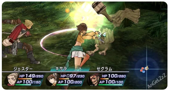 Приятно удивила боевая система игры. Вместо обычных пошаговых боёв мы получили сражения в реальном времени, своей динамикой не уступающие Devil May Cry. Каждый из восьми контролируемых персонажей использует своё уникальное оружие ближнего боя, одновременно экипированное оружие, позволяющее разделаться с врагом, находящимся вне пределов прямого физического контакта, а так же набор способностей, приобретаемых по мере развития. Это позволяет сделать бои более динамичными и сражаться именно так, как нравится игроку. Например, ничто не помешает выпустить в супостата несколько зарядов из бластера, а потом встретить его красивым и эффективным комбо, не отвлекаясь при этом ни на какие таблицы экипировки или режима атаки. Впрочем, для любителей старой пошаговой системы предусмотрено меню, вызываемое нажатием одной из кнопок, в котором можно подлечиться, изменить статус или использовать предметы. Оттуда же откроется доступ к полезным в атаке и обороне, традиционно эффектным специальным возможностям.