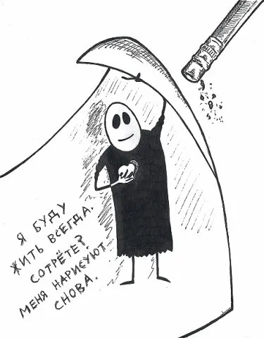 Mr. Freeman: Он нарисовал меня за три минуты и сразу в цифре. Черно-белым. Потому что я не хочу ничего лишнего, мне оно не нужно, поэтому и цвет выбрал один — черный на белом фоне. А художник… Любимый художник… Самый любимый художник… Его любимый художник — Альбрехт Дюрер.