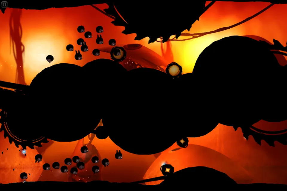 Ближе к середине игры Badland просто ставит нас перед фактом – енота лысого вы пройдете дальше, не наступив десяток-другой раз на обидно бьющие по носу грабли. Без сучка и задоринки проскользнуть захотели? Не выйдет – вот вам и сучок, вот вам и задоринка, плюс кукиш Ильича в придачу. Badland постоянно подкидывает новые задачки, ключики к которым мы просто не успеваем обнаружить из-за быстрого темпа игры. Паззлы, основанные на логике, головоломки, базирующиеся на чистой физике, скрытые пути решения, доступ к коим получаешь лишь энное время спустя путем набивания шишек и разбивания смартфона/планшета о твердую поверхность – из глубин души рвутся невообразимо честные эмоции, а изо рта льется рекой хула в сторону клонов, разработчиков и Badland в целом. Привыкли к ускорению и замедлению времени? Вот вам мозголомалки с увеличением/уменьшение тушек пушистиков. Поднаторели на этом поприще, обвыклись? Поздравляем! Теперь ваши обгоревшие тефтелины умеют прилипать к поверхностям, и вы будете страдать! Что? Мало? Все изучили? Не беда – теперь вы управляете не круглыми, а квадратными шмакодявками – с иными физическими условиями! И это только начало.