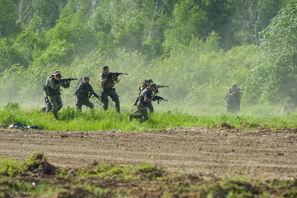 33. Надеюсь, все поняли, что боевые действия были ненастоящими, и мы просто играли в страйкбол) Но зато какой! С обеих сторон участвовало порядка 100 человек из числа активных бойцов (с псевдобоевым оружием), и это без учета солдат-срочников из массовки (с автоматами, пулеметами и гранатометами, но с холостым, понятное дело, боезапасом). А еще ведь были боевые машины пехоты, танки и прочая техника. Такое вот шоу, такое вот мероприятие!)