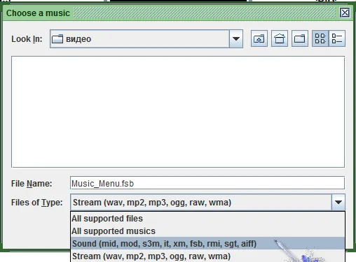 Распаковываем архив, затем запускаем нужную программу. Нажимаем на кнопку Open, в нужном формате выбираем Sound, выбираем нужный файл.