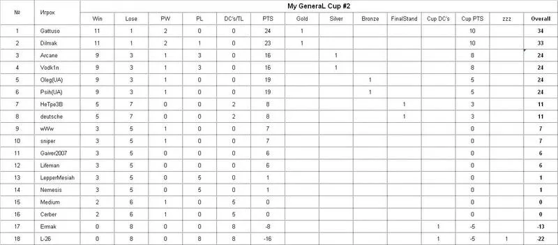 My GeneraL Cup #2 - Результаты