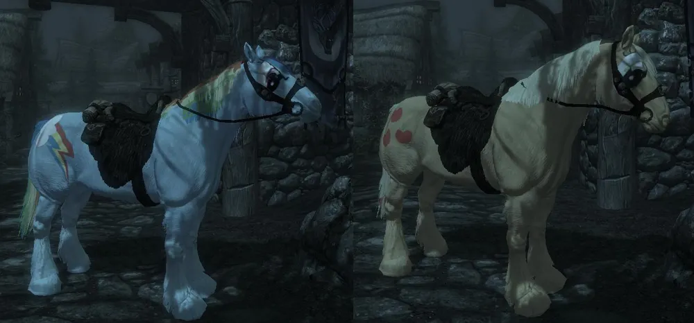 С этим модом вы можете превратить всех лошадок в одну из 5 героинь MLP. Мод сделан очень качественно и добавляет радости в мир Скайрима. К сожалению можно выбрать только одну текстуру для всех лошадей сразу.