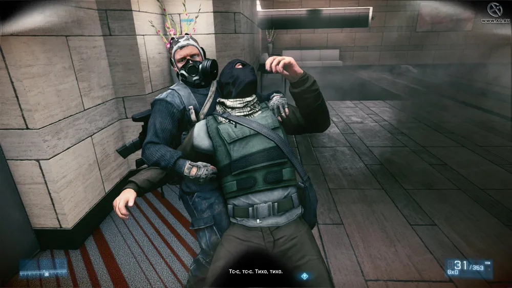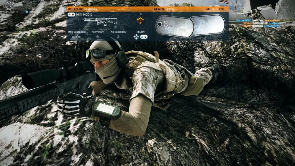 Тут и кроется одно из коренных отличий BF3 от MW3 (если отбросить масштаб и технику) — эта игра более реалистична, нацелена на более вдумчивые действия (в течении раунда можно менять оружие на классах, камуфляж и гаджеты на оружии), на большую командную сыгранность, чем на закон джунглей, что действует в CoD: “Победит сильнейший, каждый сам за себя”. Даже один умелый игрок практически ничего не сможет изменить на поле боя, если его не поддерживают товарищи и если у команды нет сыгранности на элементарном уровне (медик должен лечить, а не самоотверженно лезть на пулемёт, пулемётчик должен вовремя снабжать патронами союзников, а не с диким воплем носиться по уровню, забыв убрать палец со спускового крючка пулемёта), то о победе можно забыть как о страшном сне.
