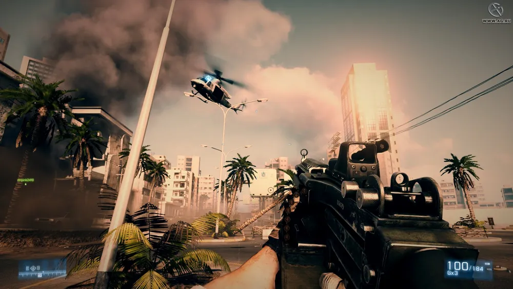 И именно здесь, в одиночной кампании нам в первый раз показывают всю мощь движка Frostbyte 2. Удивительная детализация уровней (на уровне CoD, который хвастался тем, что несмотря на преклонный возраст движка, он может обрабатывать множество полигонов на экране), красивейшее освещение, потрясающее звучание, всё это создаёт неповторимую атмосферу. Стоянка. Горящие остовы автомобилей. Дым поднимается, отбрасывает тень (!), а сквозь него ослепительно ярко светит полуденное солнце. Такого вы не забудете ещё долго, уверяю вас.
