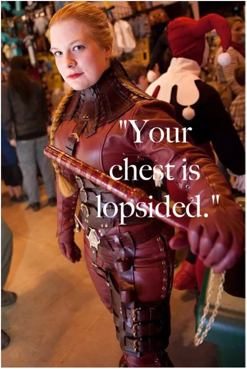 Комментарии насчет тела, его формы и веса, просто грубы и оскорбительны для каждого косплеера. Этот косплей не для вашего размера! Те, кто так думают, сильно заблуждаются. Любой может косплеить, независимо от их внешнего вида. Если кто-то думает иначе, должны пересмотреть свои взгляды на красоту и соответствие ей. Красота проявляется во всех формах и размерах. Мы верим, что отклики нашего сообщества гиков лучше, чем некоторые обидные комментарии, что мы встречаем. Мы видим, что они не нравятся не только нам, но и нашим друзьям и другим косплеерам.