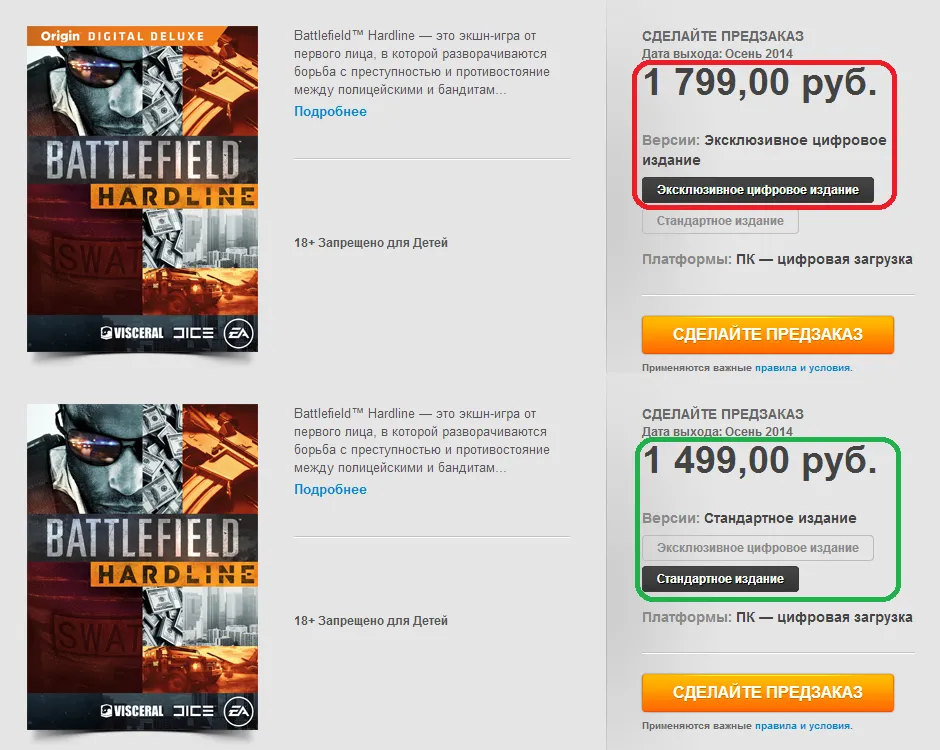 Эксклюзивное издание Battlefield: Hardline - 1799 рублей