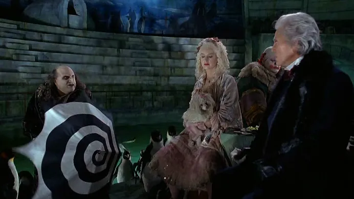 Бэтмен и Пингвина встречаются на улицах Готэма. Киношные фразы.