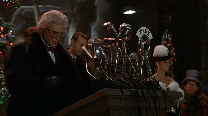 Макс Шрек торжественно начинает свою речь. Рассказывает о празднике, семейных ценностях, клянется в своей любви к городу и намекает вскользь о своем грандиозном строительстве мощной электростанции, которая избавила бы Готэм от нехватки электроэнергии.