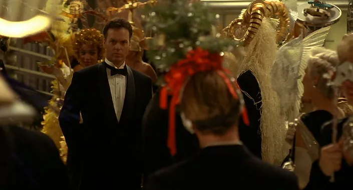 Брюс отправляется на прием, устроенный Шреком. Он танцует с Селиной Кайл.