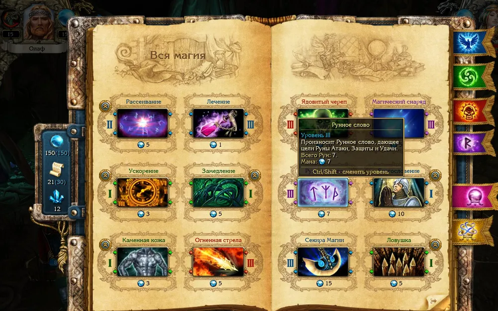 На следующем ходу вновь применяем «Рунное слово» к чародеям, скальды благословляют свои войска и так далее, до полной победы.