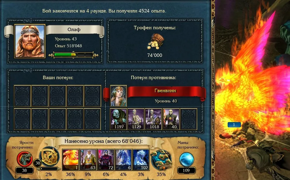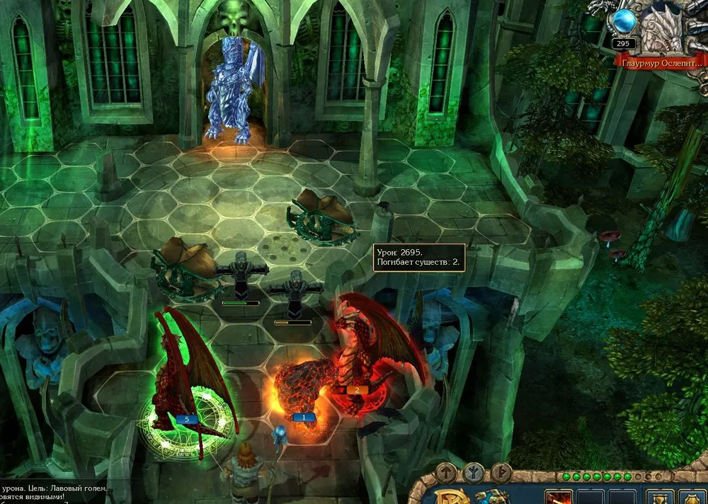 Если дополнить эту пёструю толпу лавовым големом и древним фениксом, то с ними вряд ли кто-то сможет справиться. Впрочем, я был вынужден убрать из войска инженеров: Гвенвинн, как истинная эльфийка, ненавидит гномов и лупит по ним атакующей магией. Затем следует баг «нулевого урона» - и всё.