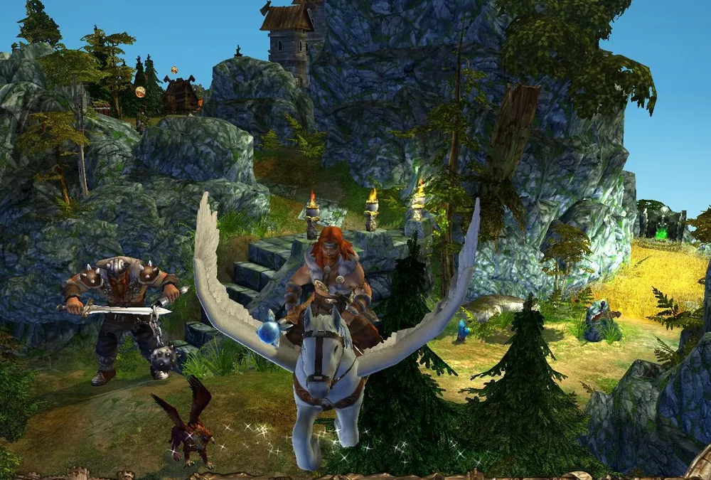Слева от замка на земле лежит скелет; иногда с таких костей можно снять что-то полезное. Но не в этот раз – герой не может к нему подъехать, упираясь в забор. Перенесите управление движением с мыши на кнопки, и всадник легко приблизится к нужному месту. Этот приём срабатывает всегда, когда нужно проникнуть в недоступное, на первый взгляд, место. Он же помогает отыскивать лазейки, позволяющие въехать в толщу скал, под воду или в огонь.