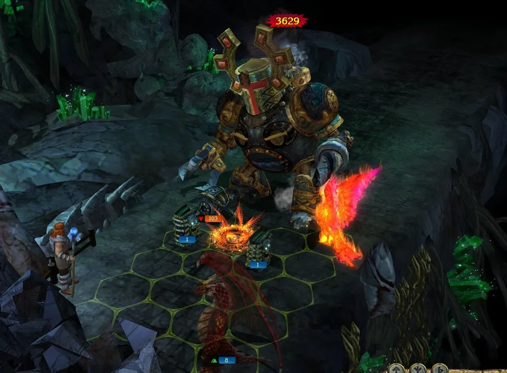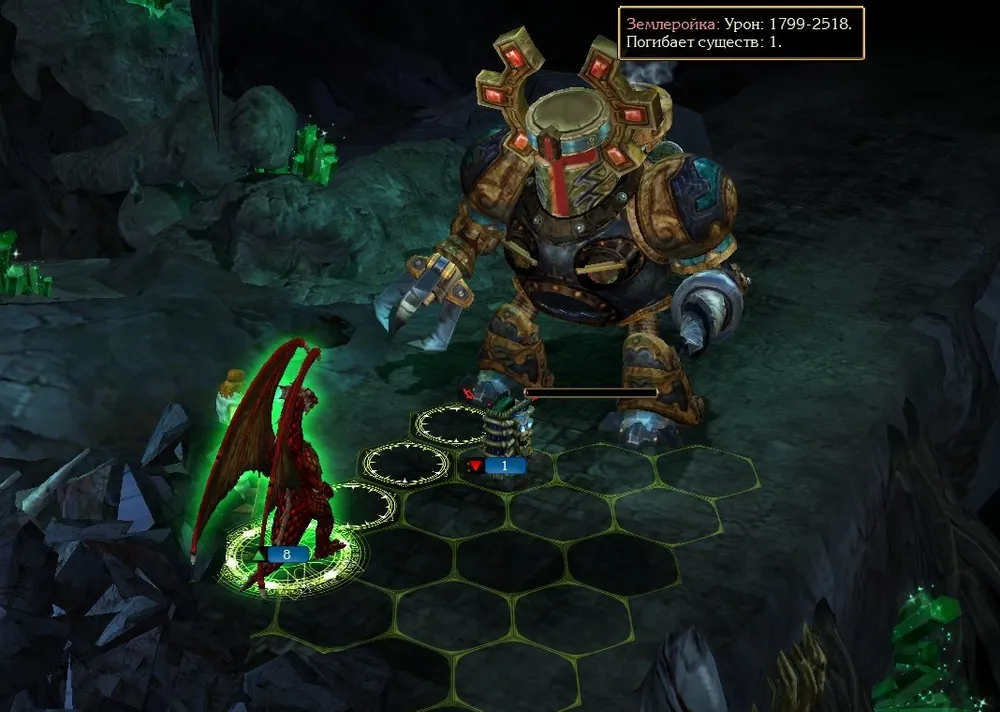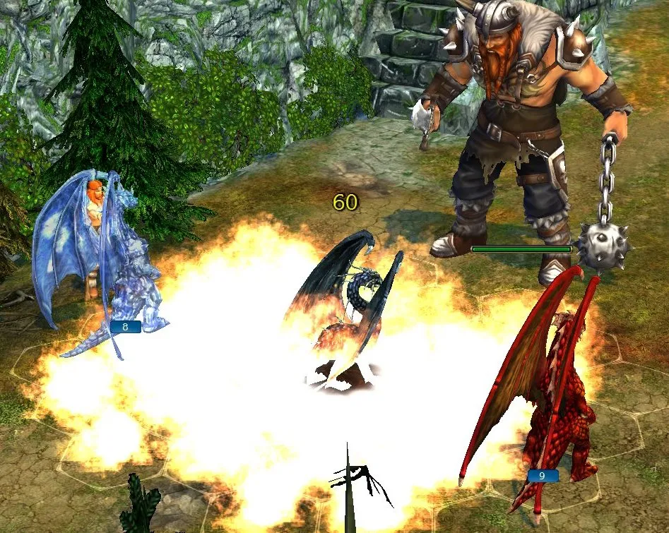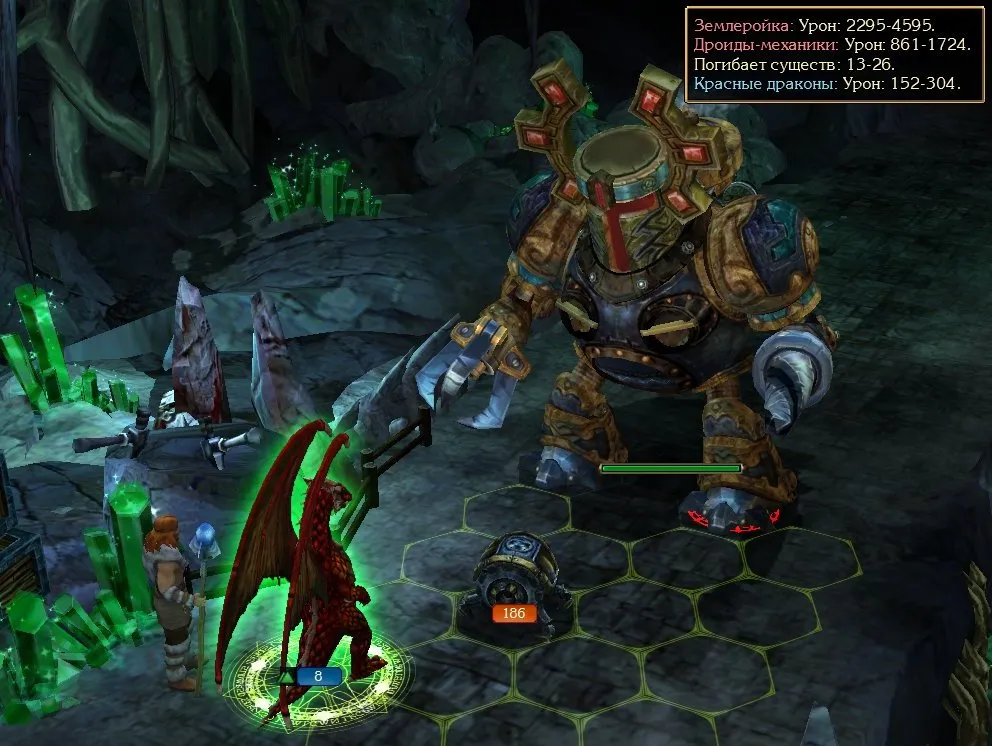 Дело в том, что злобные тома своими заклинаниями наносят гораздо больший урон, чем главный герой такими же. Плюс они устойчивы к повреждениям и магии. Каждый следующий ход начинается с меча, а продолжается вызовом книги. Драконы тем временем уничтожают призванных врагов, не покидая краёв поля боя.