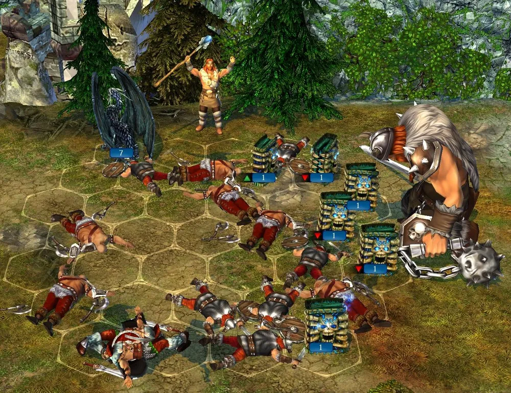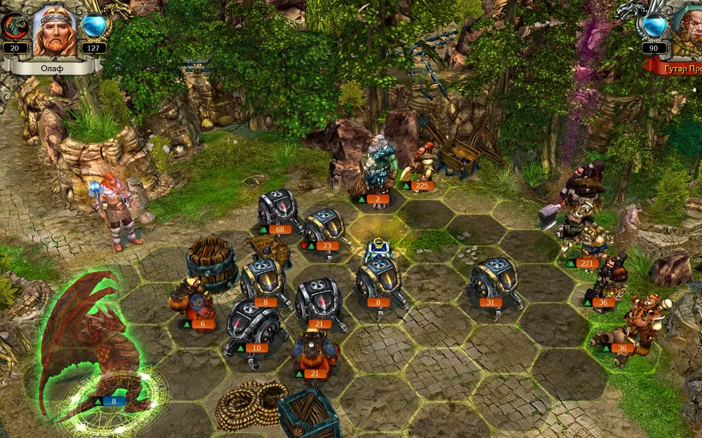 Очень желательно, чтобы к началу боя с Локи у вас был взят хотя бы один уровень умения «Тактика», это поможет разместить отряды по краям карты без потери очков хода. Сколько и каких отрядов брать? На мой взгляд, достаточно одного-трёх отрядов драконов; любые другие войска будут получать серьёзный урон от прыжков Локи и бросков его цепа.